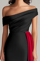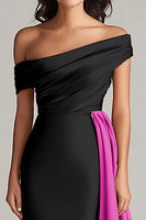 Black and White One Shoulder Satin Ruched Long Formal Dress with Ruffles