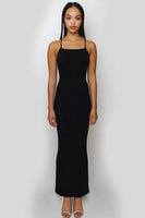 Black Satin Spaghetti Straps Sheath Long Formal Dress