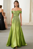 Green A Line Pleated Off the Shoulder Long Formal Dress