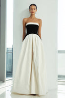 Simple Black and White Patchwork A Line Strapless Long Formal Dress