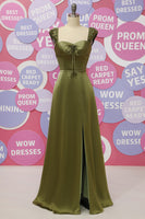 Army Green Sweetheart Satin A Line Long Prom Dress With Slit