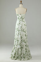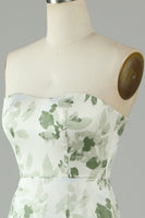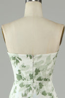 Asymmetrical Strapless Printed Green Long Prom Dress