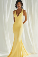 Daffodil Satin Mermaid V Neck Long Prom Dress