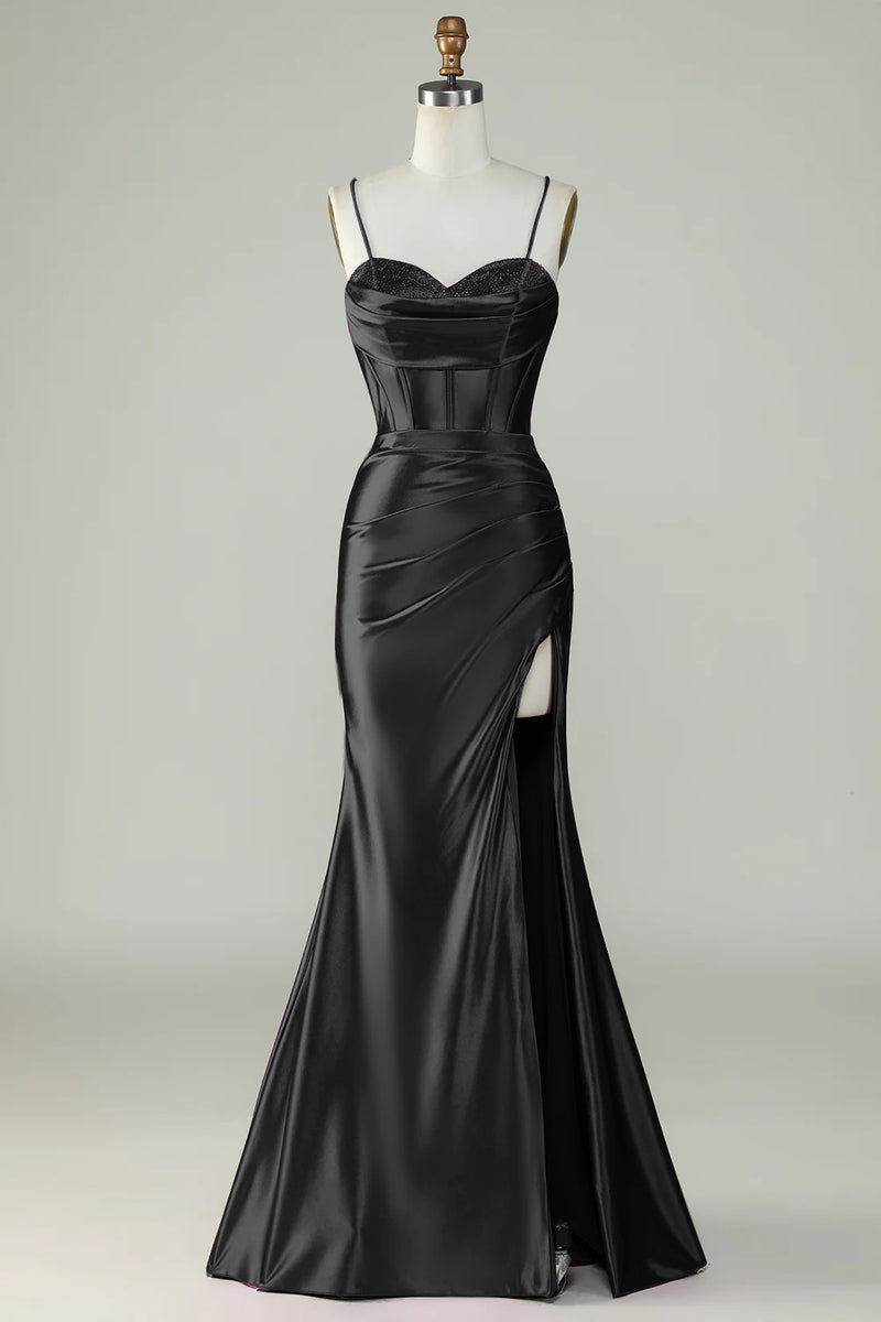 Dark Purple Spaghetti Straps Mermaid Long Prom Dress With Slit
