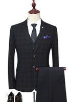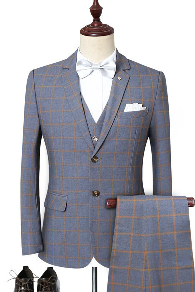 Grey Plaid 3 Piece Notch Lapel 2 Buttons Men Suits