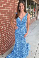 Mermaid Black V-Neck Sequins Long Prom Dress