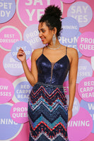 Mermaid Spaghetti Straps Navy Prom Dress with Criss Cross Back