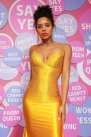 Mermaid Spaghetti Straps Yellow Long Prom Dress with Beading