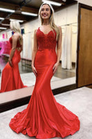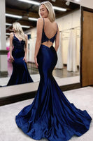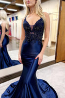 Navy Corset Mermaid Long Prom Dress with Lace Appliques