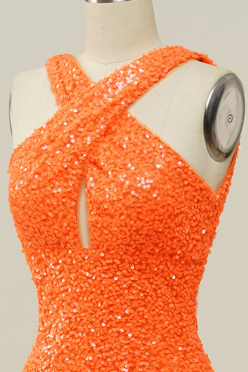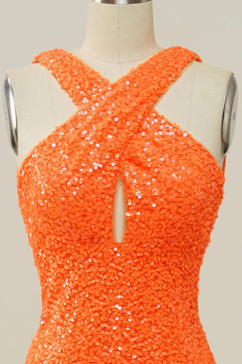 Orange Halter Sequined Backless Mermaid Prom Dress