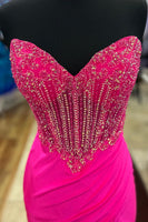 Orange Mermaid Satin Strapless Corset Long Prom Dress with Slit