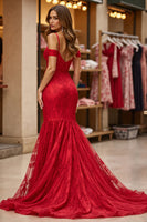 Red Lace Corset Mermaid Long Prom Dress with Slit