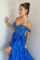 Royal Blue Mermaid Sparkly Off the Shoulder Long Prom Dress with Sequins