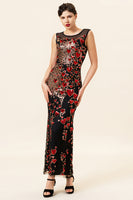 Sheath Round Neck Black Red Love Heart Beaded Long Flapper Dress