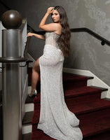 Sparkly Blue Mermaid Strapless Long Prom Dress with Slit