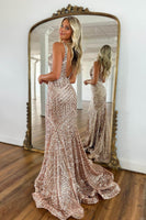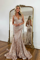 Sparkly Champagne Deep V Neck Sequin Mermaid Prom Dress