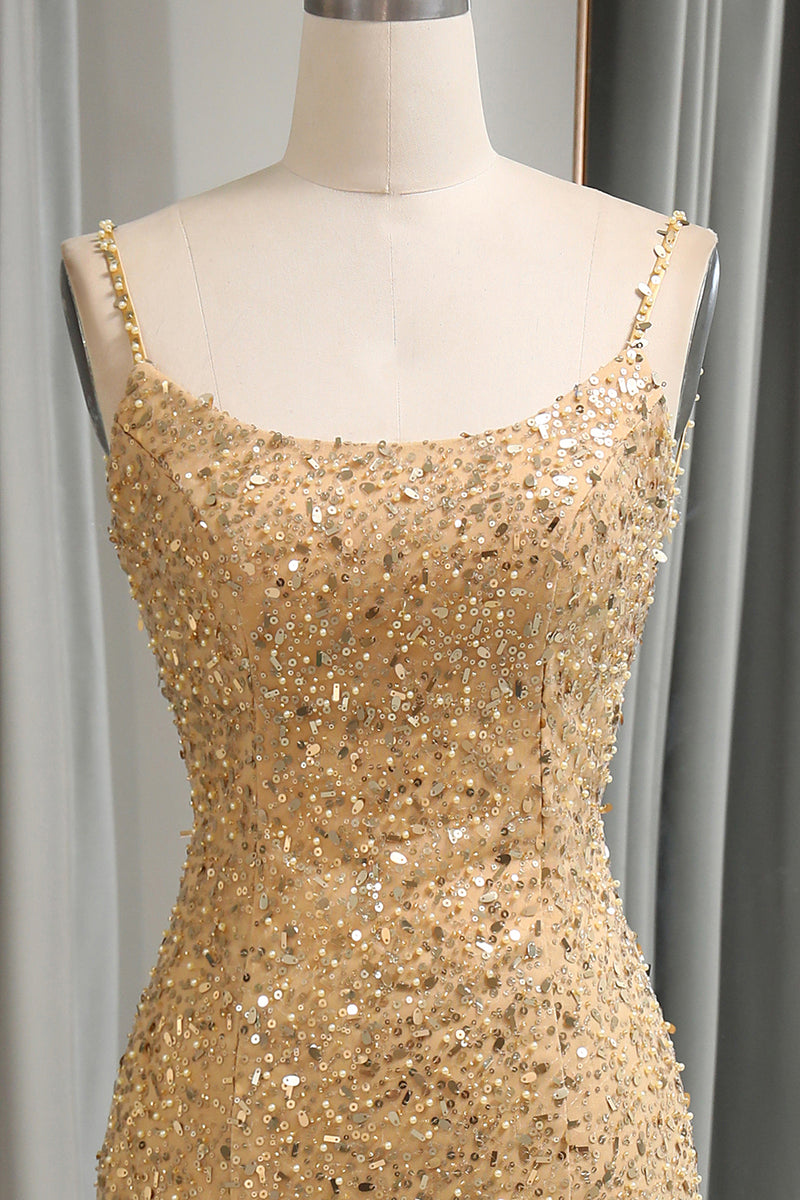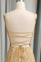 Sparkly Golden Sequins Mermaid Long Prom Dress With Slit
