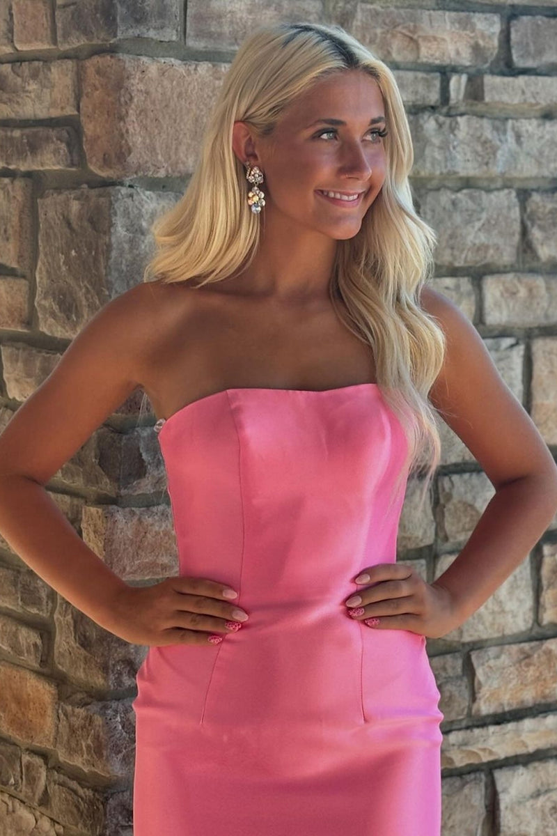 Sparkly Pink Strapless Tiered Mermaid Prom Dress With Slit