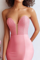 Sparkly Watermelon Sequin Mermaid Long Prom Dress with Slit