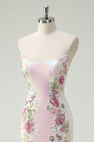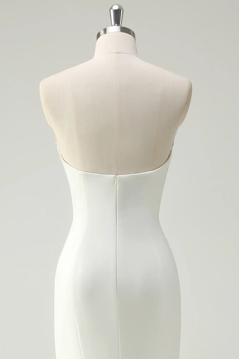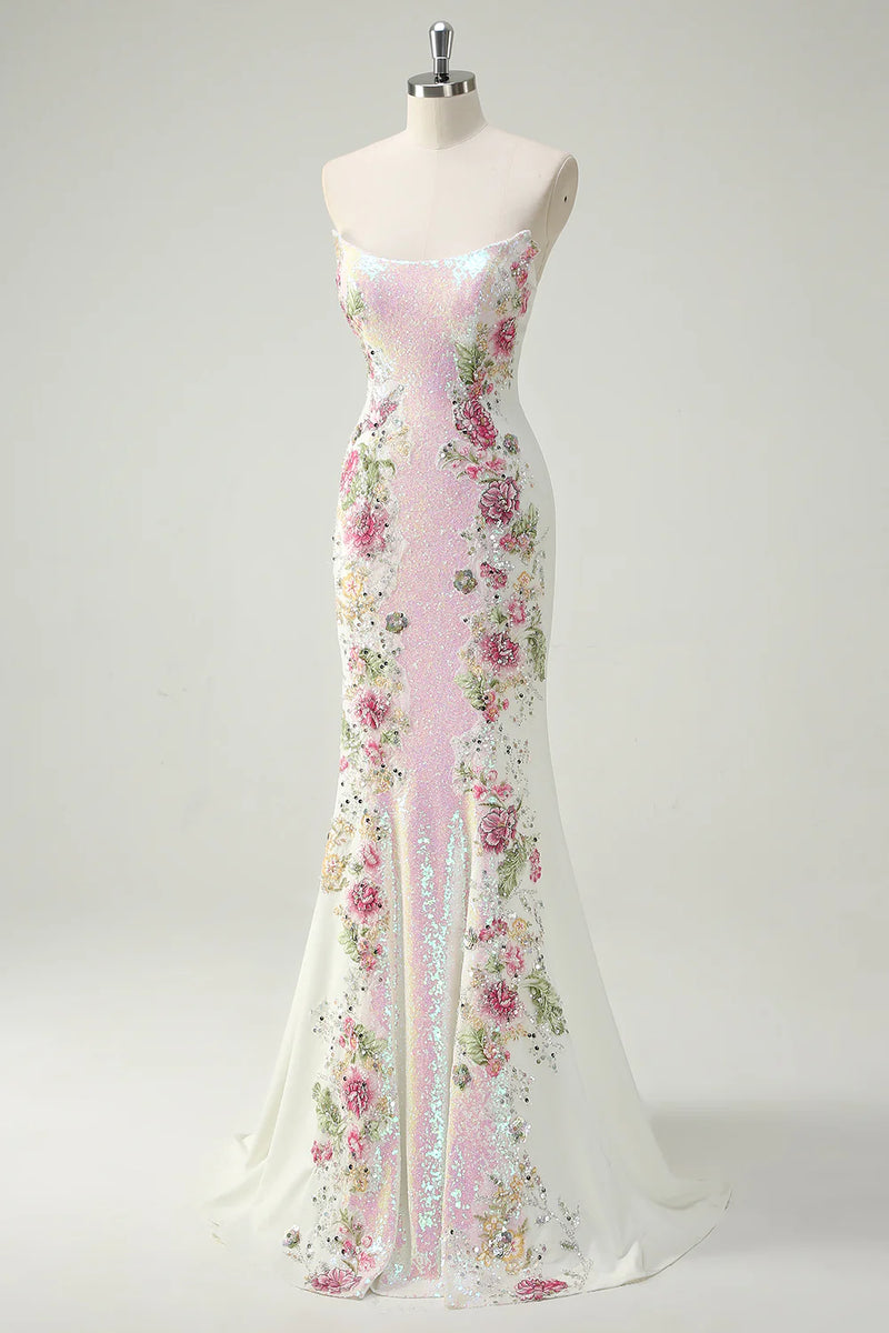 Sparkly White Flower Strapless Long Mermaid Prom Dress