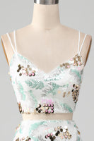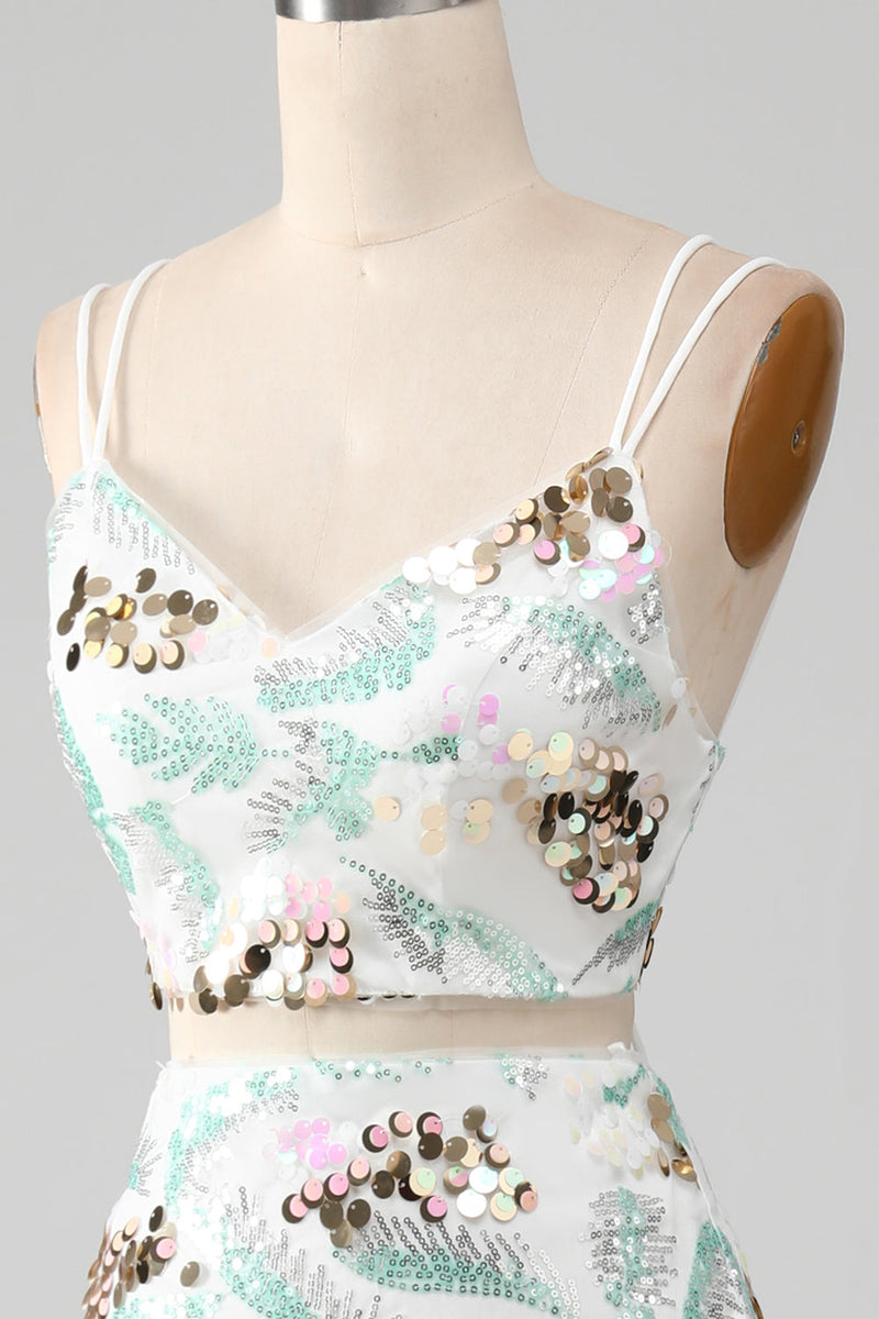 White Two-Piece Sparkly Mermaid Prom Dress with Slit