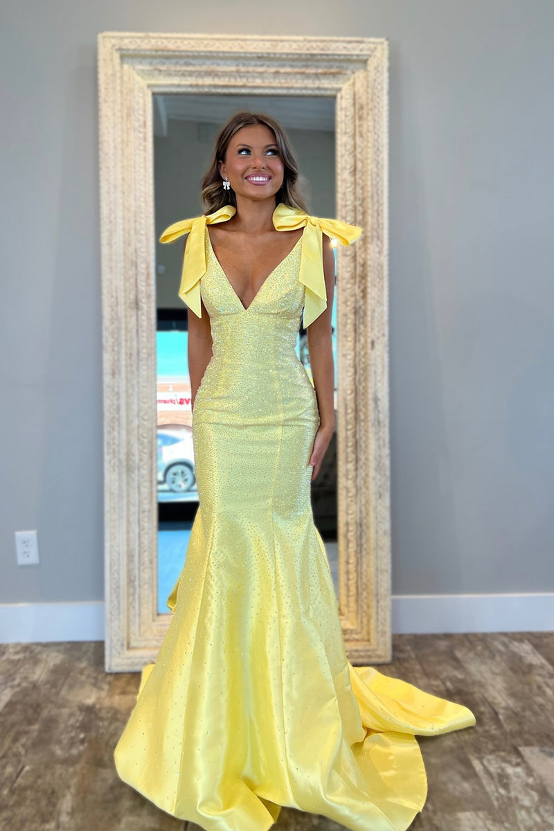Yellow Mermaid V Neck Long Prom Dress With Beading