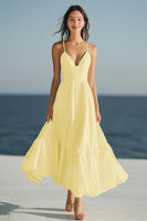 Ivory A Line Spaghetti Straps Beach Maxi Engagement Dress