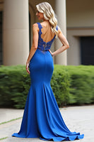 Mermaid Royal Blue Spaghetti Straps Long Prom Dress with Appliques