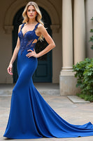 Royal Blue Mermaid Cut-Out Long Prom Dress with Appliques