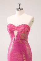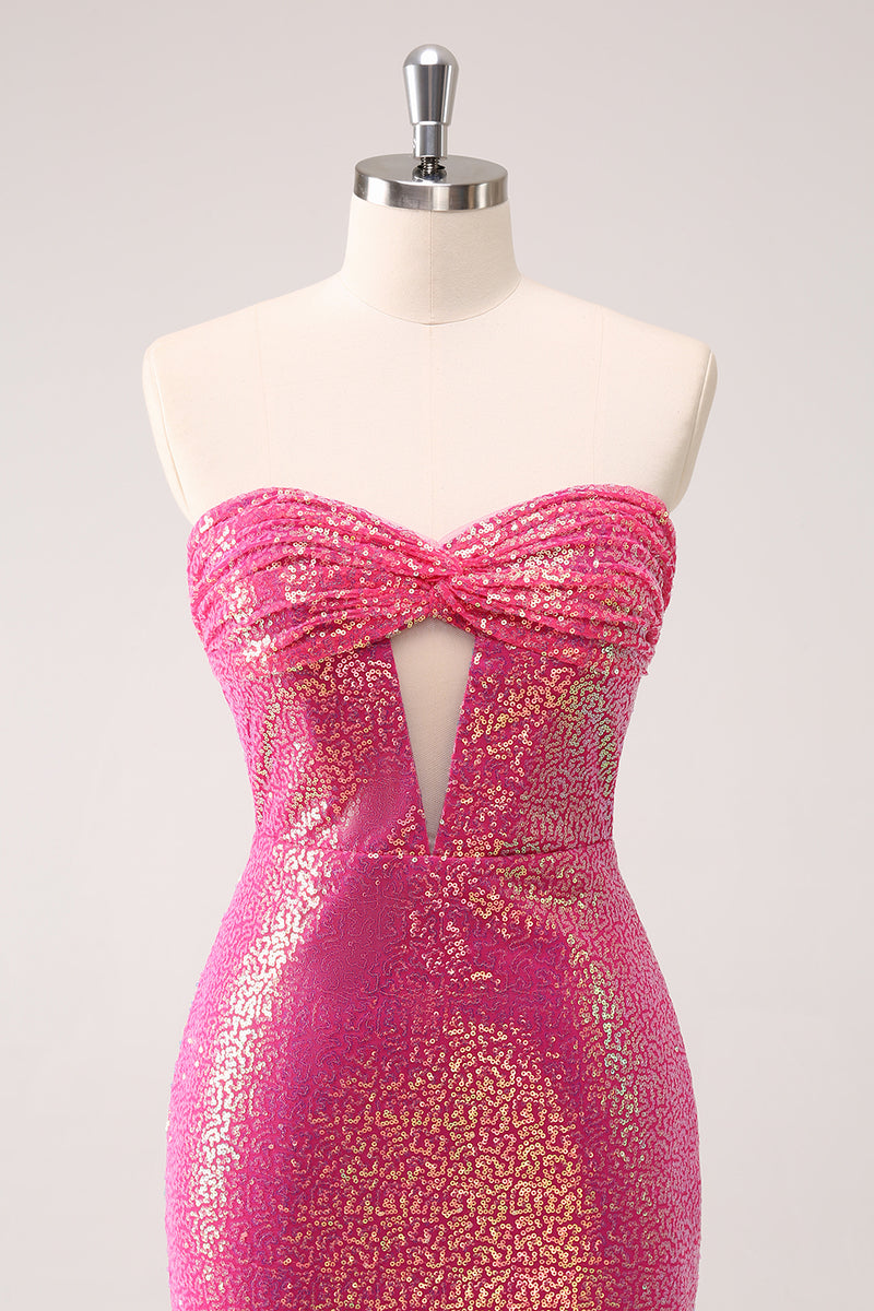 Sparkly Fuchsia Sweetheart Tight Short Homecoming Dress with Keyhole