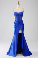 Mermaid Strapless Royal Blue Corset Prom Dress with Beading