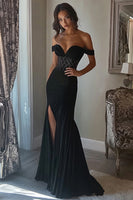 Sparkly Black Mermaid Satin Long Prom Dress with Slit
