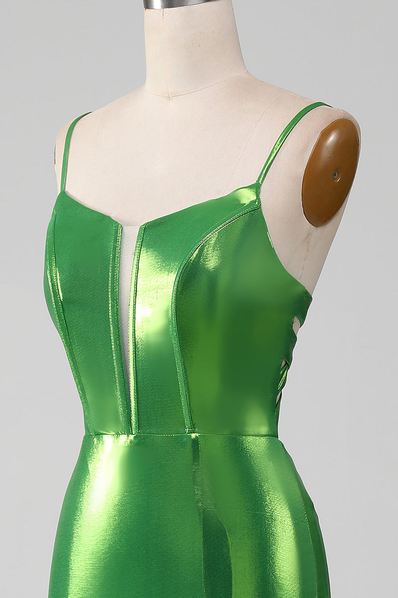 Sparkly Hot Pink Mermaid Simple Prom Dress With Slit