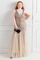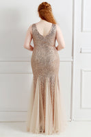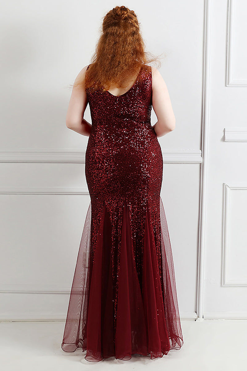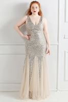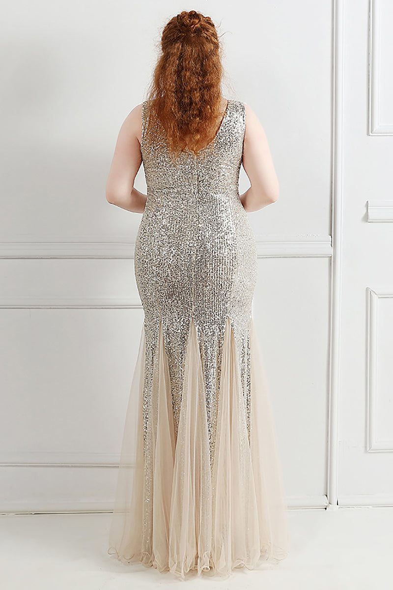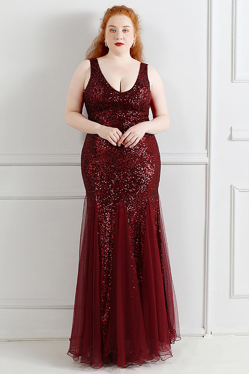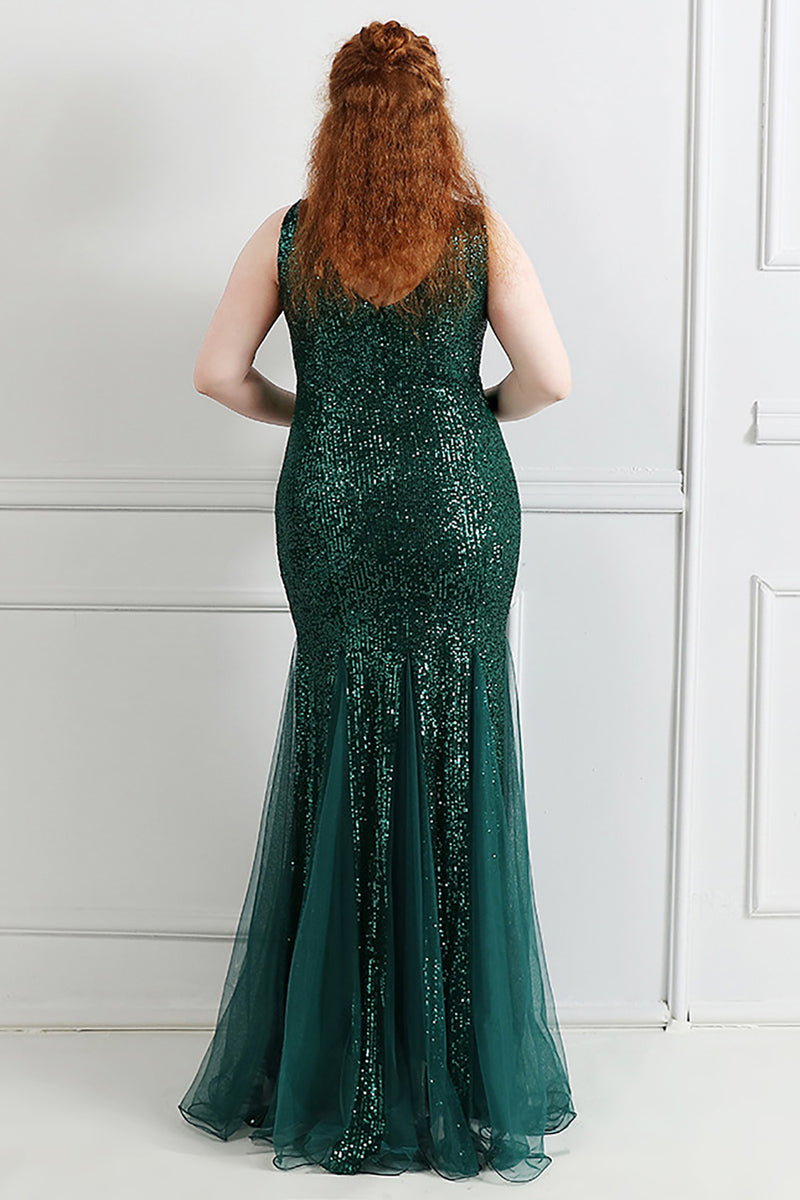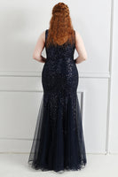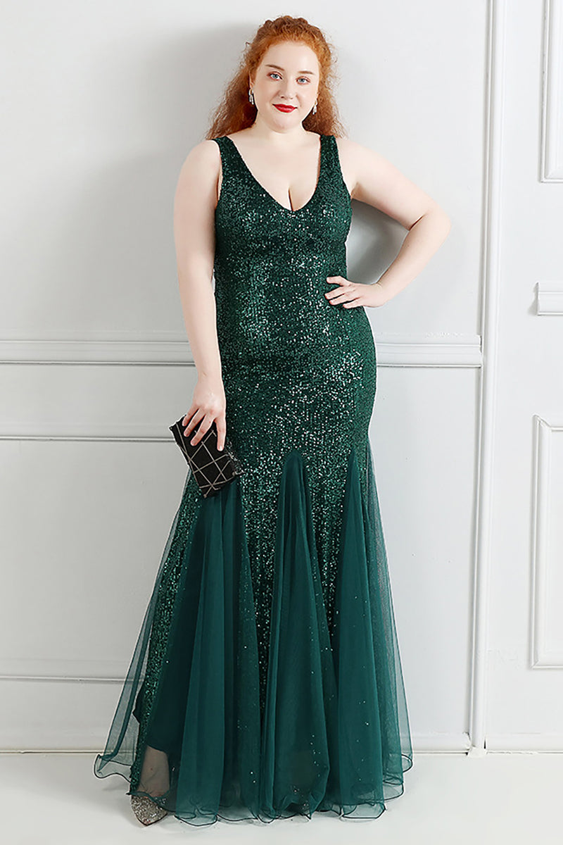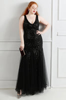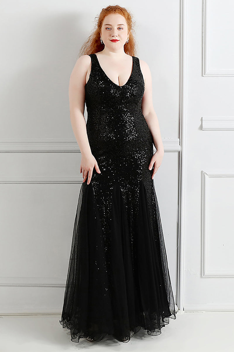 Black V-Neck Sequins Tulle Plus Size Prom Dress
