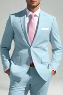 Dark Blue 2 Piece Peak Lapel Double Breasted Men Prom Suits
