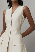 Ivory Satin A Line Short Work Blazer Dress with Pockets